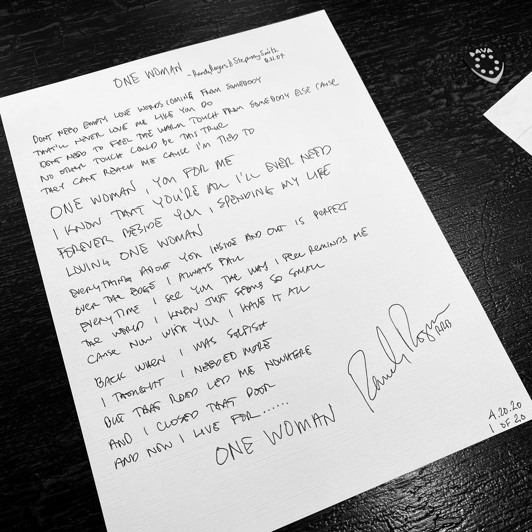 "One Woman" Handwritten Lyrics by Randy Rogers